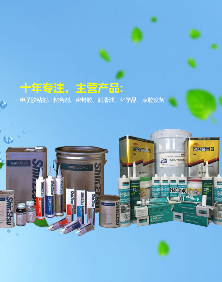經過10年的發(fā)展,公司已成為優(yōu)質的產品代理和膠粘解決方案的提供商,目前主要的代理產品有:美國道康寧系列,日本信越系列,東部化學系列,韓國樂泰系列等。公司產品廣泛應用的行業(yè)有:汽車、電子、光電、機電、電器、醫(yī)療、航空、通訊等行業(yè)電子元器件、零部件、模塊組件,為其提供線路板粘接、密封、灌封、披覆、潤滑、導熱、絕緣等全面的膠粘與潤滑解決方案。